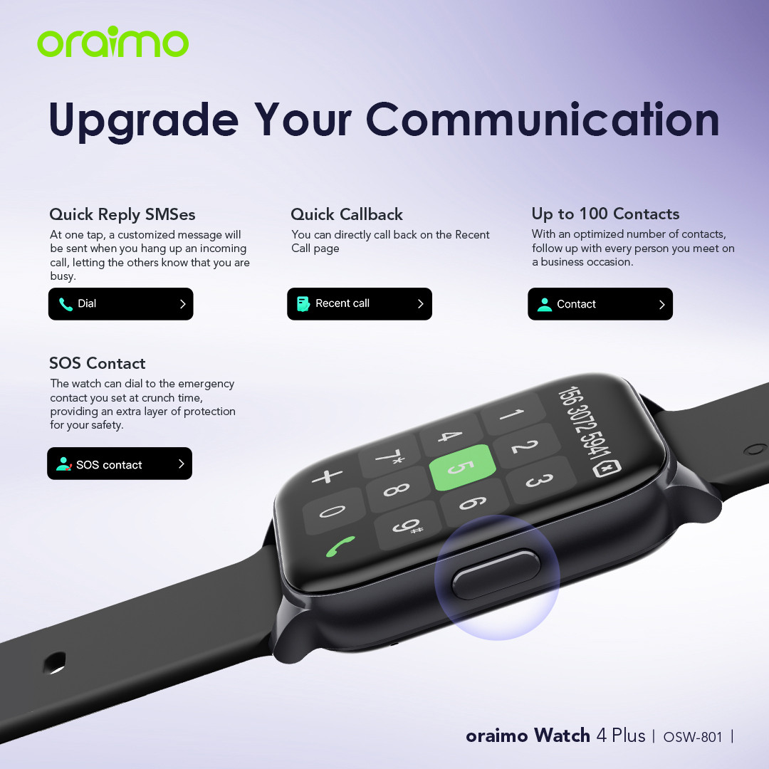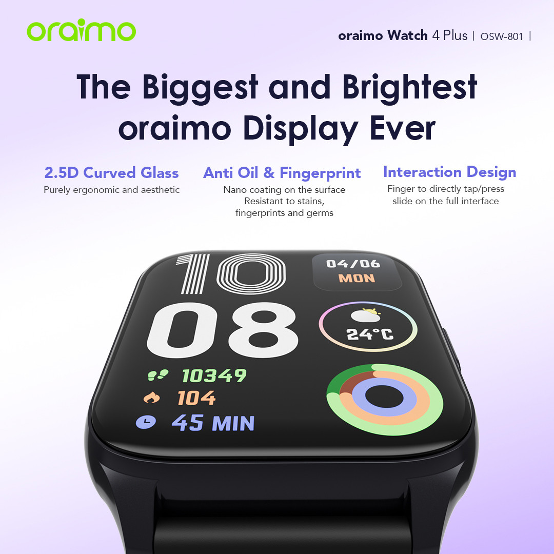 The oraimo Watch 4 Plus has a larger viewable area. Its 240*282px high-definition screen with a maximum brightness of 500 nits offers ultra-clear viewing, allowing you to see clearly even in direct sunlight.