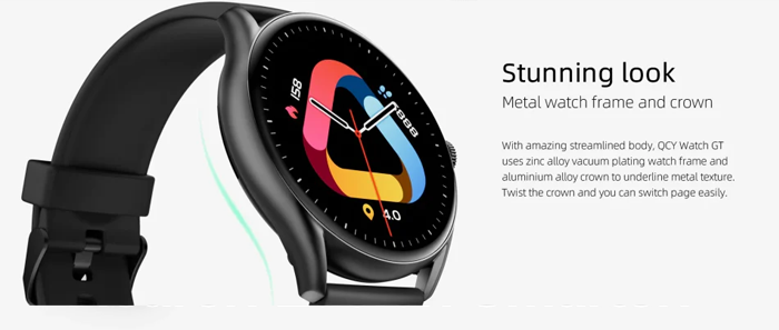 • The QCY Watch GT Smart Watch presents an impressive combination of style and functionality, making it an ideal companion for modern lifestyles. Boasting a Retina-level AMOLED display, this smartwatch offers a visual experience that is both vivid and clear. The classic round watch design enhances its appeal, while the remarkable 60 Hz refresh rate ensures a super-smooth control experience.
